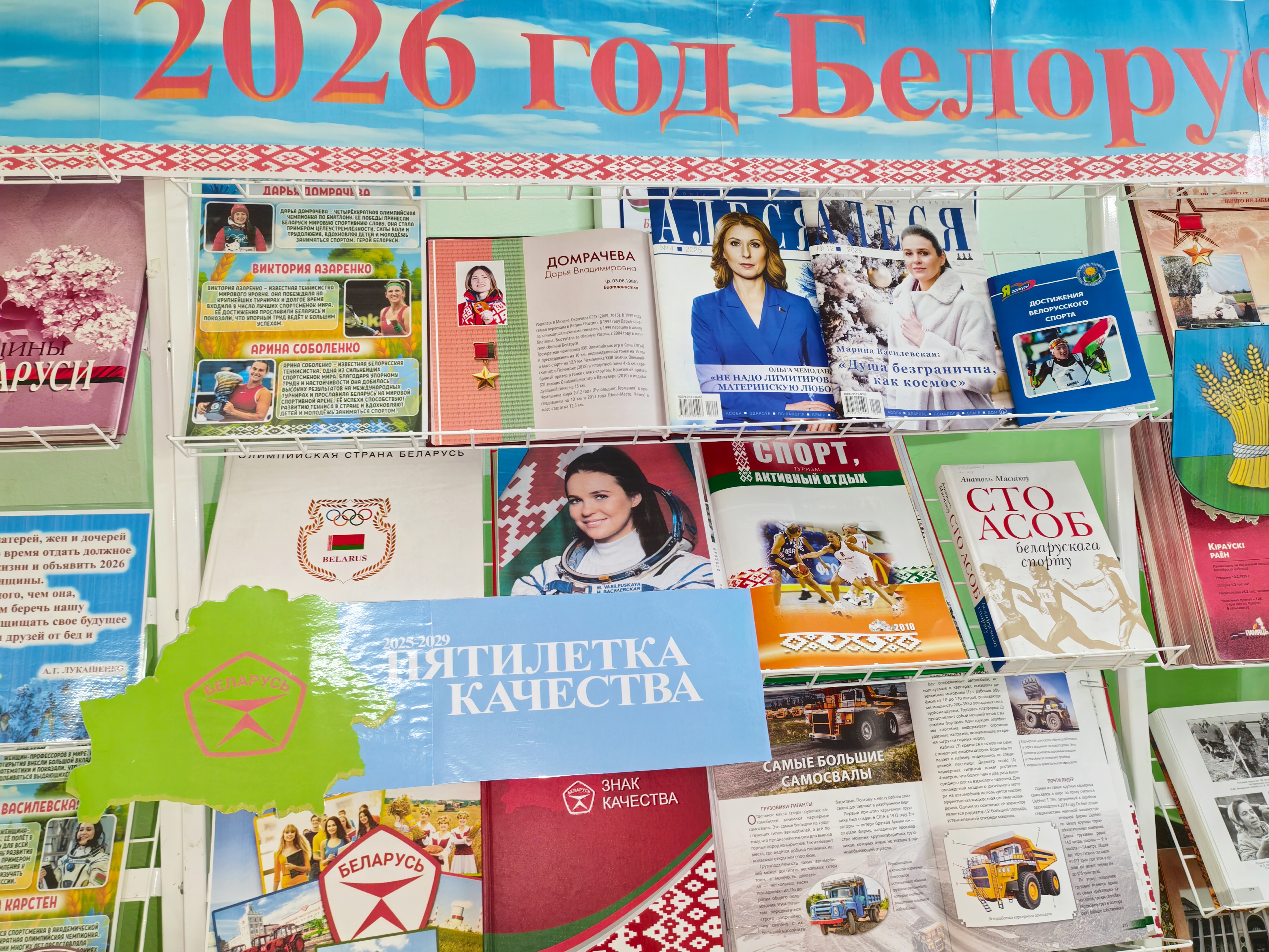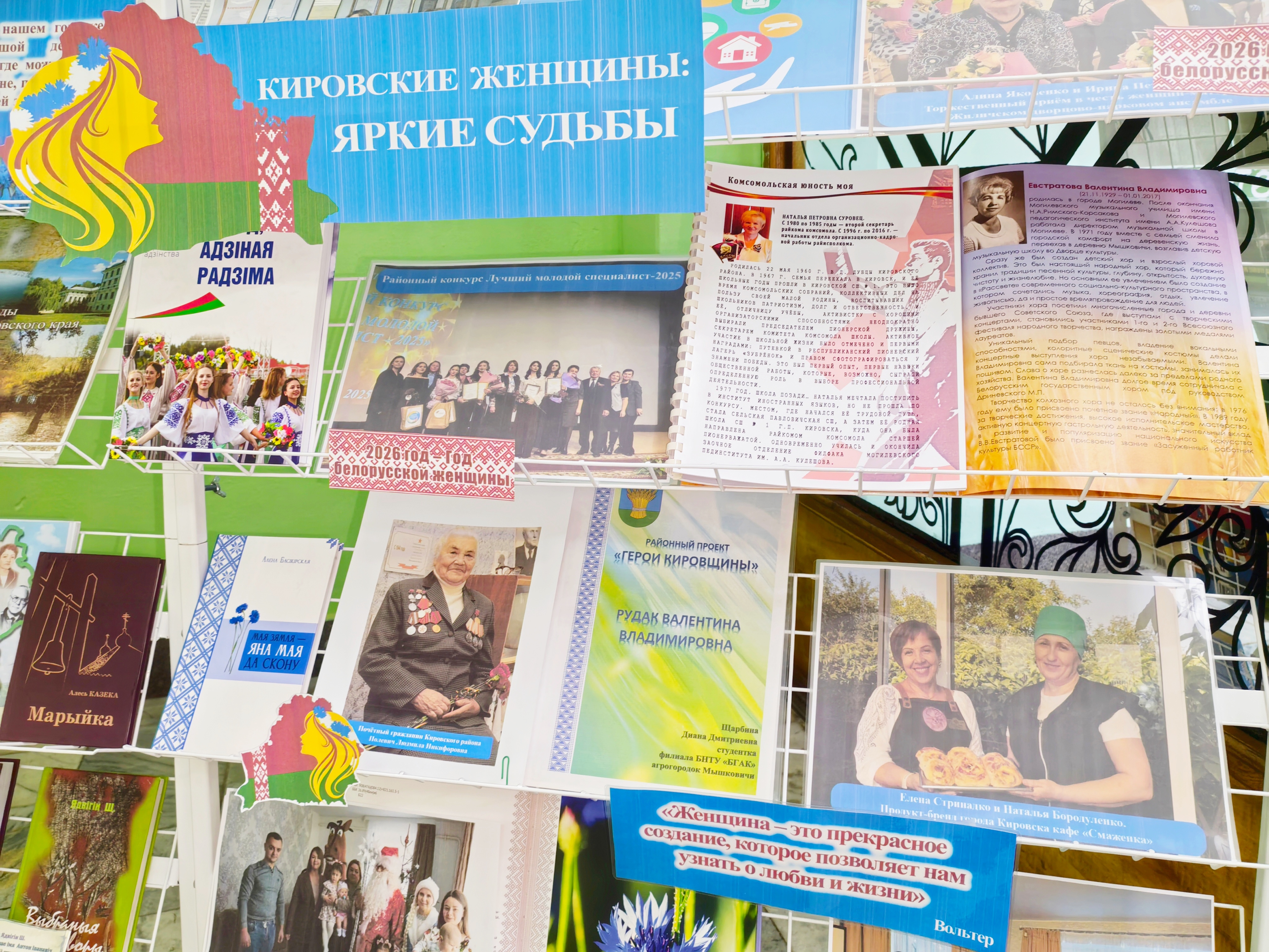 В рамках торжественного мероприятия «Почёт и слава вам люди труда», посвященного итогам работы отраслей народного хозяйства района за 2025 год, Кировская центральная библиотека представила книжно-иллюстративную выставку «2026 год Белорусской женщины». Экспозиция объединила четыре тематических блока, каждый из которых отражает неразрывную связь истории, качества труда и женских судеб Кировщины.