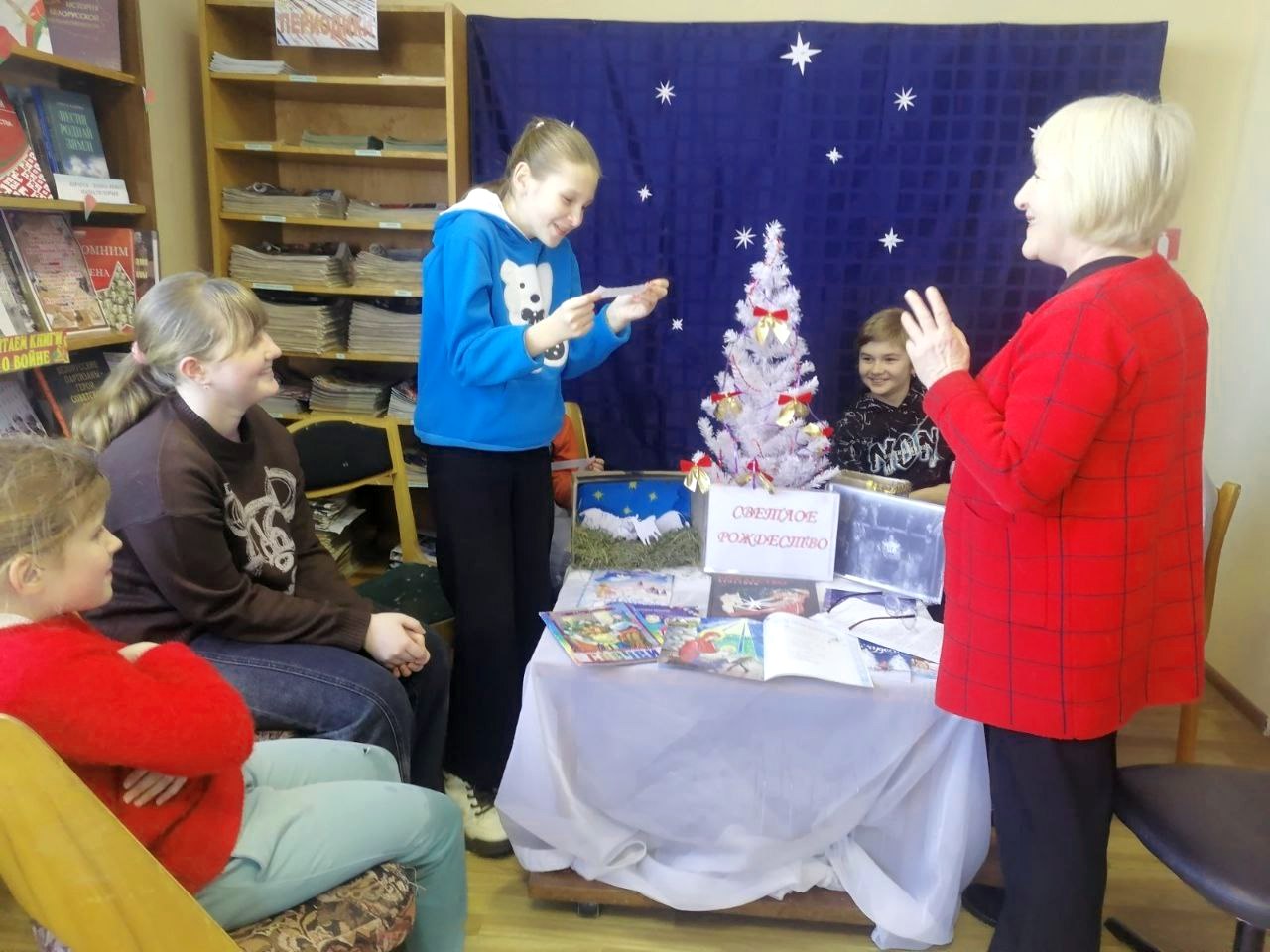 Библиотекарь рассказала ребятам, что этот праздник считается одним из главных христианских праздников, а его символом является звезда, которая оповестила волхвов о рождении младенца Иисуса. Дети познакомились с традициями празднования Рождества Христова, не обошлось и без забавных рождественских конкурсов, загадок, игр, шуточных рождественских предсказаний.