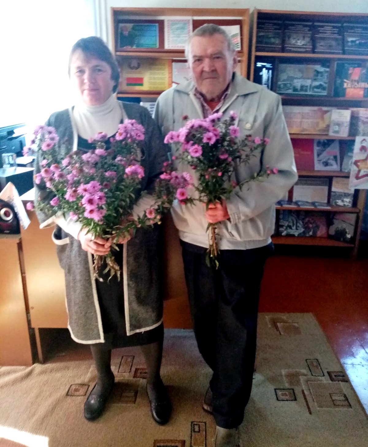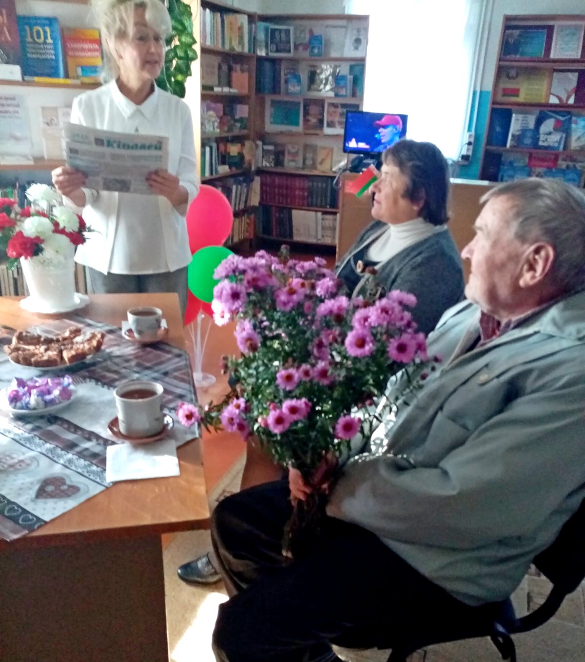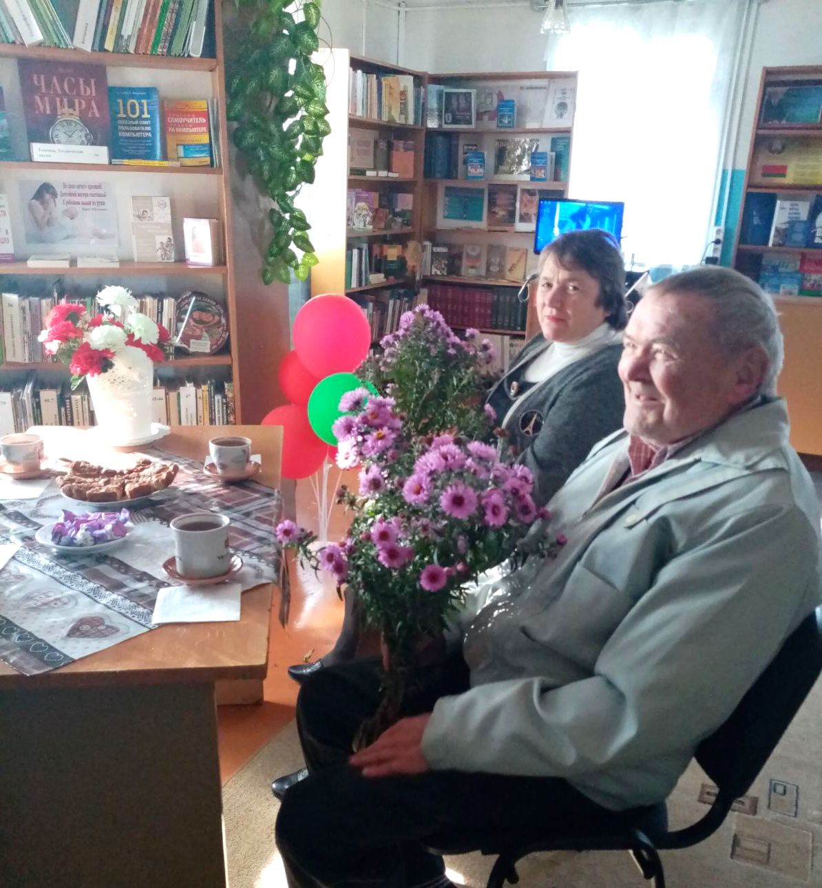 Библиотекарь обратилась к присутствующим с теплыми словами и пожеланиями, вручила цветы, пожелала крепкого здоровья, заботы родных людей, отличного настроения и семейного благополучия.