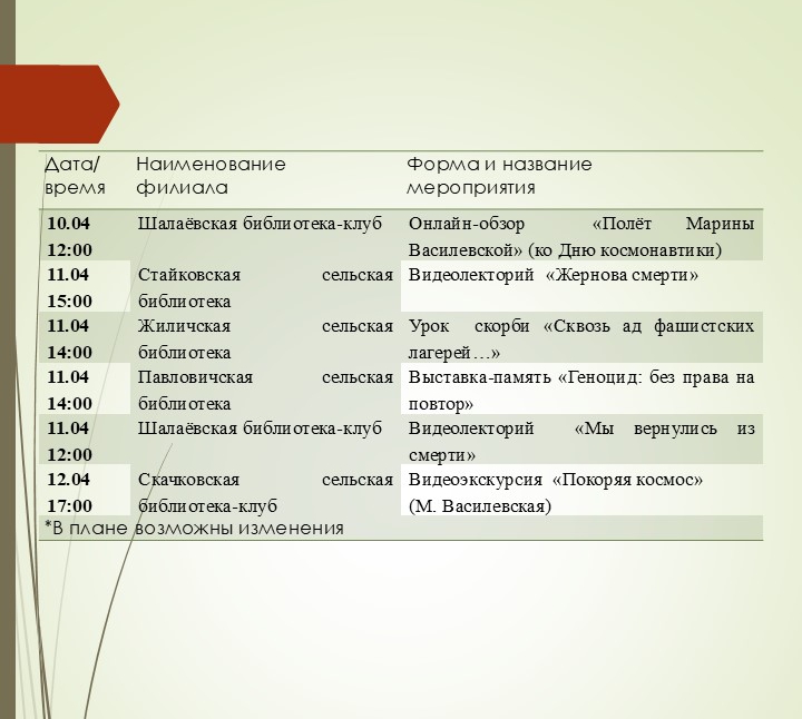 ДЛЯ УТОЧНЕНИЯ ИНФОРМАЦИИ ПО МЕРОПРИЯТИЯМ, ПРОСЬБА ОБРАЩАТЬСЯ ПО ТЕЛЕФОНУ: 802237 77127