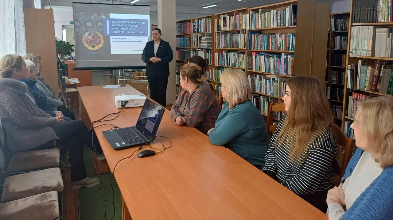 Сегодня в государственном учреждении культуры «Сеть библиотек Кировского района» прошёл единый день информирования на тему «Оборонительная мощь белорусской армии и патриотизм в современных условиях».